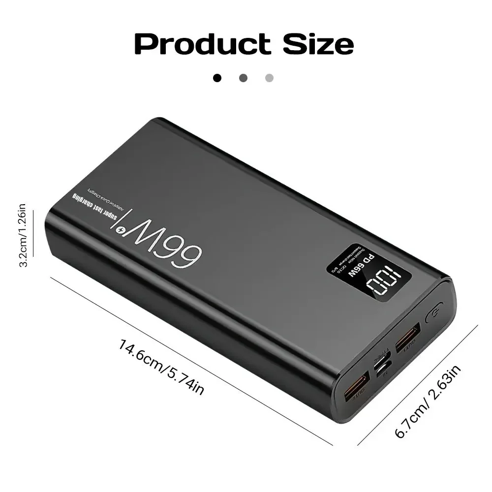 100000mAh Power Bank 66W Super Fast Charging For 20W Built-in 4 Cables Portable Digital Powerbank External Battery